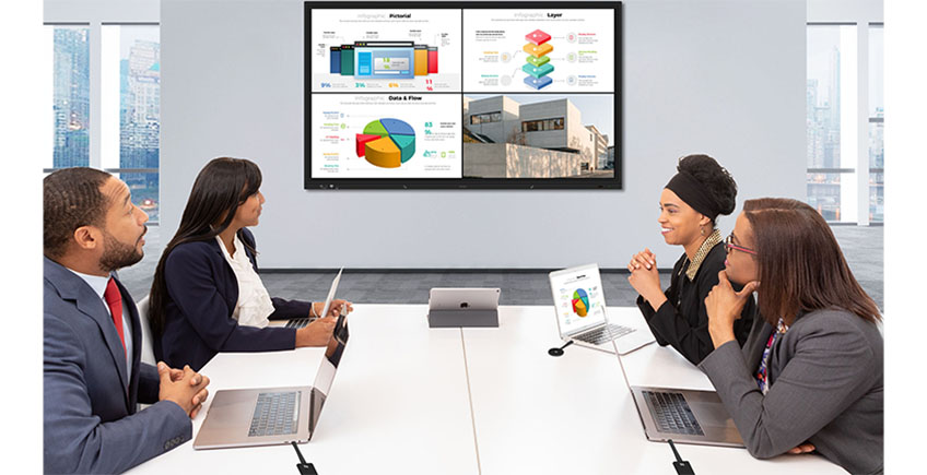 In addition to 802.11ac Wi-Fi and Bluetooth, IQTouch interactive flat panels feature HDMI, USB, VGA for fast and seamless connectivity between keyboards, webcams, and all the devices your team needs to communicate ideas.